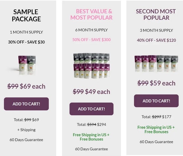 The per-serving costs of the All Day Slimming Tea weight loss powder are listed as follows for the different packages that it is sold in: